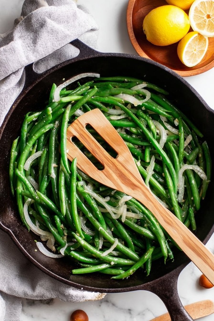 For special occasions, I love serving these green beans in a shallow white dish lined with lemon slices underneath. It makes the presentation look fresh and inviting. I’ve even layered them over a bed of almond-studded wild rice for a beautiful and textured side platter that guests really admire.