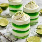 - Garnish and chill: Decorate the top with green sprinkles, lime zest, and crushed green candy for a festive finish. Refrigerate the parfaits until ready to serve chilled.