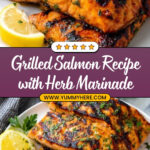 This grilled salmon recipe features tender fillets marinated in a savory and slightly sweet blend of olive oil, brown sugar, soy sauce, lemon zest, Dijon mustard, herbs, and garlic. Grilled to perfection, the salmon is juicy and flavorful with a beautiful golden-brown crust. Perfect for a healthy and easy dinner, this recipe is versatile enough to be cooked on an outdoor grill, indoor grill pan, or alternatively baked, broiled, or pan-seared.