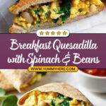 This Breakfast Quesadilla recipe features fluffy scrambled eggs mixed with sautéed spinach and creamy white beans, all melted together with freshly grated cheese in whole wheat tortillas. It’s a wholesome, protein-packed, and delicious meal perfect for a nutritious breakfast or meal prep.