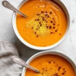 I often top the soup with a sprinkle of nutritional yeast for a cheesy flavor without dairy, plus a drizzle of sriracha if I want a spicy kick. Fresh cracked black pepper and a few red pepper flakes add a nice pop too. If I’m serving company, some crunchy toasted pumpkin seeds or crispy croutons bring in great texture and contrast.