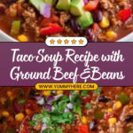 This hearty and flavorful Taco Soup recipe combines lean ground beef, tomatoes with green chiles, and a blend of spices to create a comforting and filling meal. Perfectly spiced with chili powder, cumin, and paprika, and enriched with black and pinto beans along with sweet corn, this soup offers a deliciously satisfying dish ideal for any occasion. Serve it warm topped with shredded Mexican cheese, chopped onions, diced avocado, and crunchy tortilla strips for a festive touch.
