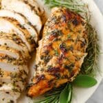 One of the best parts about this Herb Roasted Turkey Breast Recipe is how easy it is to customize. I often switch up the herbs based on what I have growing in my garden or swap the wine for broth for a different flavor. Feel free to make this recipe your own!