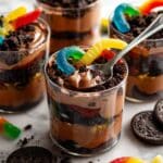 PrintHomemade Dirt Pudding with Oreo Cookies and Gummy Worms Recipe
