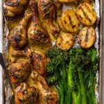 - Garnish and Serve: Sprinkle fresh thyme leaves or chopped parsley over the cooked chicken and potatoes. Serve hot with steamed broccolini on the side.