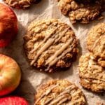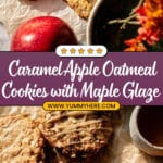 Delight in these Iced Apple Cider Caramel Oatmeal Cookies featuring a perfect crisp edge and a gooey caramel apple center, all topped with a smooth vanilla glaze. These cookies combine the warmth of brown butter, the sweetness of caramel made from apple cider, and the wholesome texture of oats for a deliciously comforting treat.