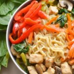 Freezing is possible, but I recommend freezing just the chicken and veggies separately from the noodles if you want best texture later. When reheating, add freshly cooked noodles or toss frozen noodles straight into a stir-fry.