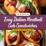 These Easy Italian Meatball Sub Sandwiches feature homemade meatballs simmered in a rich, flavorful marinara sauce, layered on crusty sub rolls, and topped with a blend of melted provolone, fontina, and parmesan cheeses. Garnished with fresh basil and a sprinkle of red pepper flakes, they make a hearty, satisfying meal perfect for family dinners or gatherings.