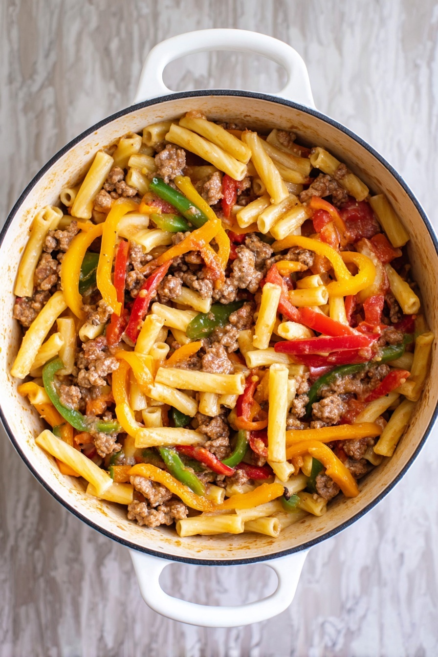 - Combine pasta and sauce: Add the cooked pasta back into the pan with the sauce. Stir well to coat the pasta evenly in the flavorful sausage and pepper sauce.