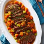 - The dish improves in flavor if made a day ahead, allowing the brisket to soak in the braising liquid overnight.