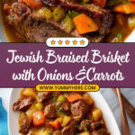 A classic Jewish-style braised beef brisket slow-cooked to tender perfection with a savory blend of onions, carrots, celery, garlic, and a rich tomato and red wine sauce. This hearty, comforting dish is perfect for holiday celebrations like Passover and Hanukkah or any special occasion.