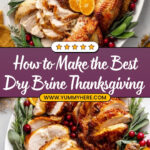 A dry brine uses salt and seasonings rubbed directly on the turkey’s skin and cavity, without any water. It helps the bird retain moisture and flavor by drawing out juices that then get reabsorbed. Wet brining involves soaking the turkey in a saltwater solution. I find dry brining easier and less messy, with equally amazing results.