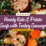 This hearty Kale and Potato Soup with Turkey Sausage is a comforting and nutritious meal featuring tender potatoes, savory Italian turkey sausage, and flavorful kale simmered in a rich chicken broth. Perfect for a wholesome lunch or dinner, this soup combines the earthiness of greens with the satisfying bite of sausage and potatoes for a balanced and tasty dish.