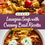 This Lasagna Soup with Creamy Basil Ricotta Topping combines the hearty, comforting flavors of classic Italian lasagna in an easy-to-make soup form. Featuring a savory blend of Italian sausage, ground beef, tender noodles, and a rich tomato base, it is elevated by a luscious herbed ricotta topping with fresh basil. Ready in just 30 minutes, this soup offers a cozy meal perfect for busy weeknights without sacrificing any of the traditional lasagna taste.