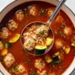 Leftover soup stores really well in airtight containers in the fridge for 3-4 days. I like to keep the meatballs separate if I know I won’t finish everything at once because they retain their texture better that way. Before serving leftovers, just warm gently on the stovetop.