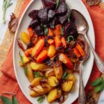 Roasted Root Vegetables with a Miso Glaze is a deliciously savory and slightly sweet side dish featuring tender carrots, beets, and red onions roasted to crisp perfection and coated in a buttery miso glaze. This warming dish is perfect for fall and winter meals, holidays like Thanksgiving, or whenever you want a flavorful vegetable side.
