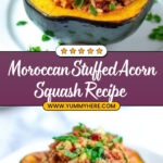 This Moroccan Stuffed Acorn Squash recipe offers a hearty and healthy cold-weather dinner, featuring a flavorful blend of spiced lean ground beef, bulgur wheat, golden raisins, pine nuts, and aromatic spices baked inside tender acorn squash halves.