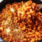 - Add toppings and broil: Spread the remaining mozzarella cheese evenly over the pasta. Cover and let the cheese melt. Then sprinkle the breadcrumb mixture on top and transfer the pot to the oven on the broil setting. Broil for 1-2 minutes until the breadcrumbs are golden and toasted. If your pot is not oven-safe, toast the breadcrumbs separately in a pan over medium heat for 3-4 minutes and then sprinkle over the pasta.