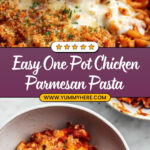 One Pot Chicken Parmesan Pasta is a flavorful and easy-to-make Italian-inspired dish combining tender chicken, pasta, marinara sauce, and melted cheeses all cooked in one pot for convenience and great taste. This hearty meal is perfect for busy weeknights, delivering the classic flavors of Chicken Parmesan in a simple, cheesy pasta format with a crispy breadcrumb topping.