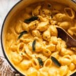 For special occasions, I’ve spooned this mac and cheese into cute ramekins, topped with crispy sage and a drizzle of browned butter. Kids love it served in a hollowed-out mini pumpkin bowl—that presentation is always a hit at fall gatherings!