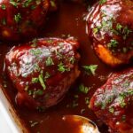 This Oven Baked BBQ Chicken recipe offers a quick and easy way to enjoy sticky, flavorful chicken indoors without firing up the grill. Using a homemade barbecue sauce packed with tangy, sweet, and savory ingredients, the chicken is braised and baked to juicy perfection with a caramelized glaze. Perfectly suited for a comforting family dinner, this dish is garnished with fresh herbs and pairs wonderfully with sides like mashed potatoes and green bean salad.