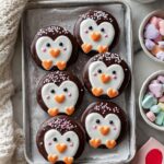 I stick to the orange candy halves for the beaks and black and pink sprinkles for the eyes and cheeks because the colors are just so vibrant against the dark frosting. Plus, the sanding sugar adds a delightful sparkle that catches the light—makes your penguins look extra festive and yummy.