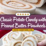 Potato Candy is a nostalgic, sweet treat made with a unique dough of mashed potatoes, butter, powdered sugar, and vanilla, rolled with a creamy peanut butter filling. This easy-to-make no-bake candy features a soft, pliable dough that is rolled out, spread with peanut butter, and sliced into delightful pinwheel slices, offering a perfect combination of creamy and sweet flavors with a hint of potato richness.