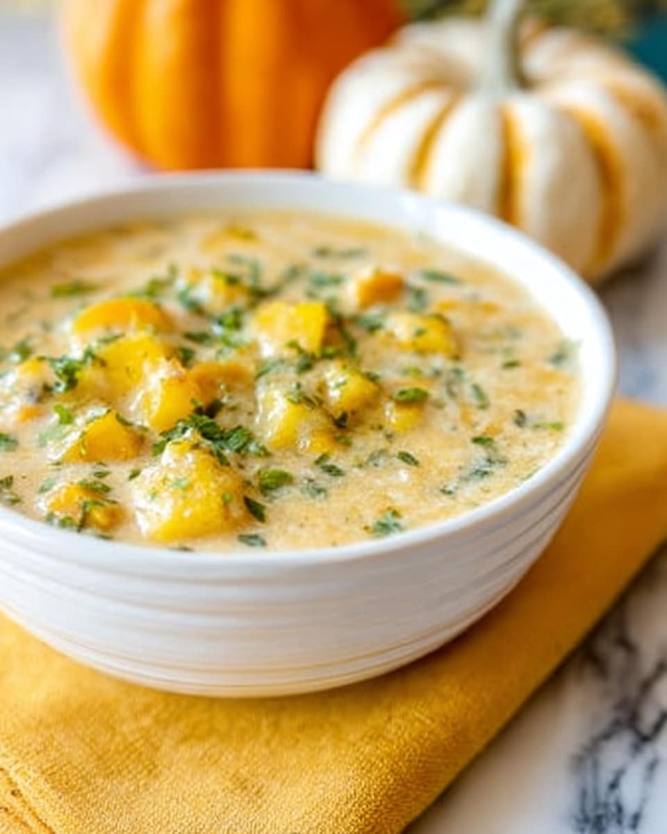 For a special occasion, I like serving the chowder in hollowed-out mini pumpkins or deep bread bowls—it’s impressive and keeps the chowder warm longer. You can also drizzle a swirl of smoky chili oil or sprinkle toasted pumpkin seeds on top for extra flair.