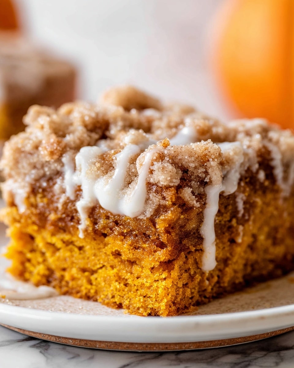 This Pumpkin Coffee Cake recipe is a moist, tender fall favorite layered with spiced pumpkin streusel and topped with a smooth vanilla icing. Perfect for cozy mornings or holiday gatherings, it balances warm cinnamon and pumpkin pie spice flavors with a buttery crumb topping baked to golden perfection. The cake is best served warm and keeps well for several days.