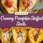 These Pumpkin Stuffed Shells are a cozy, fall-inspired vegetarian dish featuring jumbo pasta shells filled with a creamy pumpkin and ricotta mixture flavored with sage, cinnamon, and nutmeg, baked in a rich marinara sauce for a comforting and flavorful meal perfect for the season.