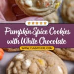 PrintPumpkin Spice Cookies with White Chocolate Chips & Halloween M&M’s Recipe