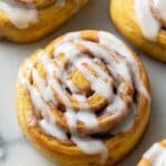 I’ve frozen these pumpkin cinnamon rolls both before and after baking. If you freeze dough slices rolled up on a tray and then wrap tightly, you can bake fresh rolls later by adding a few extra minutes. For already-baked rolls, wrap individually in plastic wrap and foil to keep them from drying out.