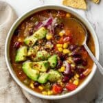 This Quick Mexican Bean Soup is a hearty, comforting, and nutrient-dense vegan recipe that combines beans, vegetables, and spices to create a deliciously warming dish. Ready in just 40 minutes, it’s perfect for an easy weeknight meal with optional toppings like avocado, vegan cheddar, hot sauce, and tortilla chips.
