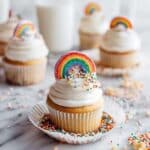 I love topping mine with a light scattering of tiny rainbow sprinkles or edible glitter to elevate that festive feel. Sometimes, I’ll add a few whole pieces of rainbow candy for visual interest. Using colorful cupcake liners adds another pop of color that makes the cupcakes irresistible at parties.