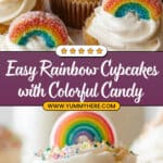 Delight in these colorful Rainbow Cupcakes topped with a creamy, homemade frosting infused with vibrant rainbow candy for a fun and festive treat perfect for any celebration.