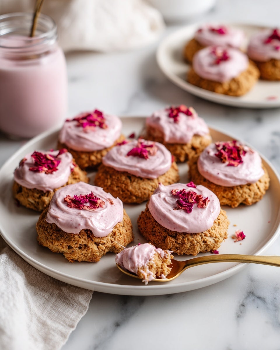 Bake the cookies for 10-12 minutes, just until the edges begin to set but the centers remain soft. While they bake, whisk together the raspberry yogurt, lemon juice, honey, and crushed freeze-dried raspberries for that beautiful glaze. This step is my favorite because the glaze tastes fresh and tangy, perfectly complementing the warmth of the cookies.