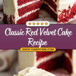 This classic Red Velvet Cake recipe results in a soft, velvety sponge with a subtle chocolate flavor, buttery richness, and a hint of tang from buttermilk. Perfectly moist and colorful, it’s layered with a smooth cream cheese frosting for an iconic dessert that serves 10 to 12 people.