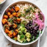 I like to switch things up depending on the season or what’s in my fridge. You can easily adapt this Roasted Sweet Potato and Black Bean Salad Recipe to suit your tastes or dietary needs – it’s really forgiving and flexible!