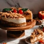 For special occasions, I’ve served this cheesecake in mini mason jars layered with crisp crumble and caramel drizzle on top—everyone thinks it’s so fun and unexpected! You can also pipe fresh whipped cream rosettes around the edges or sprinkle a touch of edible gold dust for a glam touch during the holidays.