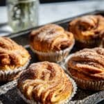 - Cut and Place in Liners: Slice the rolled pastry log into 6-8 rounds and place each round into the prepared cupcake liners. Repeat the layering and rolling process with the remaining ingredients to make the second batch. Using the palm of your hand, gently press down each round to flatten it to about half its size. Lightly sprinkle any leftover cinnamon sugar on top of each fritter.