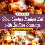 Slow Cooker Baked Ziti is a comforting and hearty pasta dish made easy by cooking it all in a slow cooker. Featuring Italian sausage, savory tomato sauce, herbs, and melted mozzarella, this recipe is perfect for busy days and makes a flavorful, make-ahead meal.