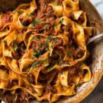 This Slow Cooked Shredded Beef Ragu Pasta is a rich and hearty Italian classic that features tender, slow-cooked chuck beef in a deeply flavorful tomato-based sauce. The beef is seared to lock in flavor, then simmered with aromatic vegetables, herbs, and red wine until melt-in-your-mouth tender. Served over pappardelle pasta and finished with fresh parmesan and parsley, this comforting dish is perfect for family dinners and also freezes beautifully for meal prep.