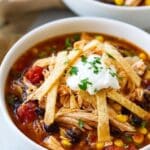 Ladle the soup into your favorite bowls and add all your preferred toppings. I like a dollop of sour cream, some shredded cheese, chopped fresh cilantro, and a few crunchy tortilla chips on top for extra texture. This part is totally your call—get creative and make it your own!