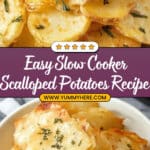 This Slow Cooker Scalloped Potatoes recipe offers a creamy, cheesy comfort food classic made effortlessly in your crock pot. Layers of tender russet potatoes baked in a rich mixture of heavy cream, chicken broth, garlic, and cheeses result in a luscious side dish perfect for any occasion.