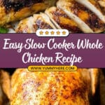 - This slow cooker whole chicken mimics the flavors of rotisserie chicken with minimal effort.