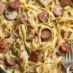 - Combine Pasta and Sausage: Add the cooked fettuccine and sausage pieces back into the skillet. Toss thoroughly to coat the pasta and sausage evenly with the Cajun Alfredo sauce.