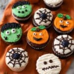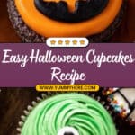 Delight in these perfectly spooky Halloween chocolate cupcakes, moist and rich with a deep coffee-infused chocolate flavor. Decorated with vibrant green, orange, and black frostings and fun candy toppings, they bring festive fun to your holiday gatherings with five easy and creative designs.