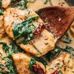 Sun Dried Tomato Chicken, also popularly known as Marry Me Chicken, features tender chicken cutlets seared to perfection and simmered in a rich, creamy white wine sauce loaded with sun dried tomatoes, fresh spinach, Pecorino Romano cheese, and fragrant basil. This elegant yet straightforward dish combines bright, savory, and creamy flavors, making it perfect for a weeknight meal or special occasion dinner, best served with crusty bread to soak up the luscious sauce.