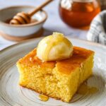- Cool and Serve: Remove the cornbread from the oven and let it cool for about 10 minutes before slicing. For an extra touch of moisture and buttery flavor, melt 2-3 tablespoons of butter and brush it over the warm cornbread. Serve warm with butter, honey, or homemade honey butter made by mixing softened butter with honey.