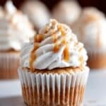 - Frost and Garnish: Generously frost the cooled cupcakes with the marshmallow frosting. Optionally, drizzle with caramel sauce and sprinkle crushed cinnamon pecans on top for extra flavor and texture.